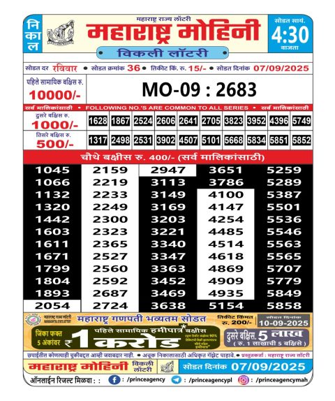 Maharashtra Weekly Lottery 4.15PM Result 07.09.2025