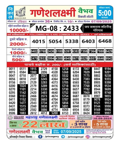 Maharashtra Ganeshlaxmi Weekly Lottery 5PM Result 07.09.2025