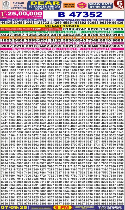Punjab State Dear 50 Daily Lottery 6PM Result 07.09.2025