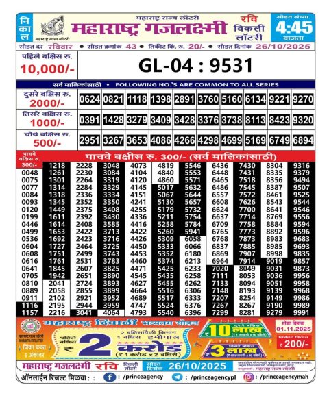 Labh Laxmi Daily Lottery 4PM Result 26.10.2025