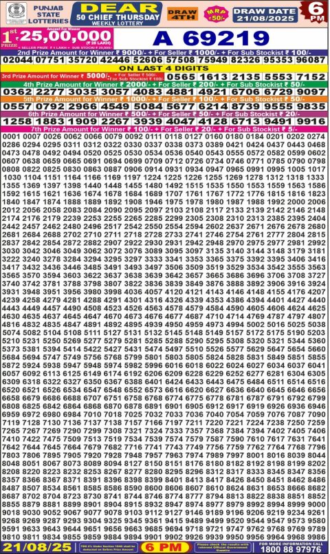 Dear Daily Lottery 8PM Result 21.08.2025