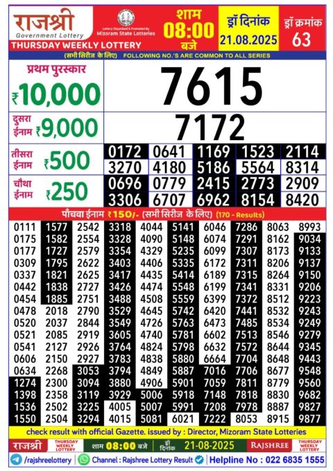 Rajshree 30 Weekly Lottery 8:30PM Result 21.08.2025