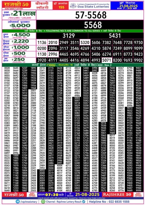 Rajshree 50 Weekly Lottery 7:30PM Result 21.08.2025