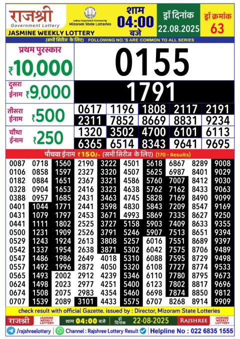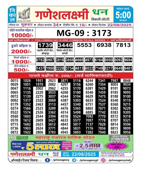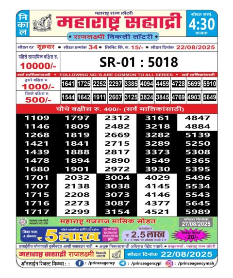 Maharashtra Weekly Lottery 4.15PM Result 22.08.2025