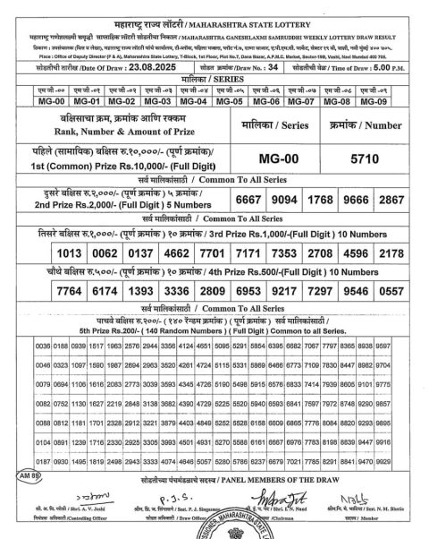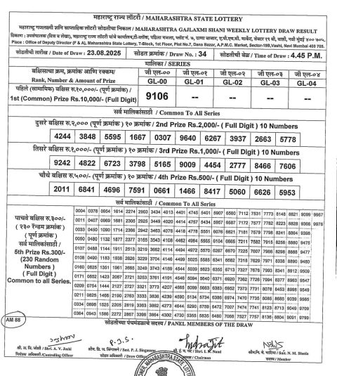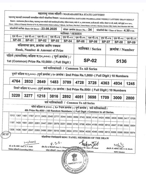 Maharashtra Weekly Lottery 4.15PM Result 23.08.2025