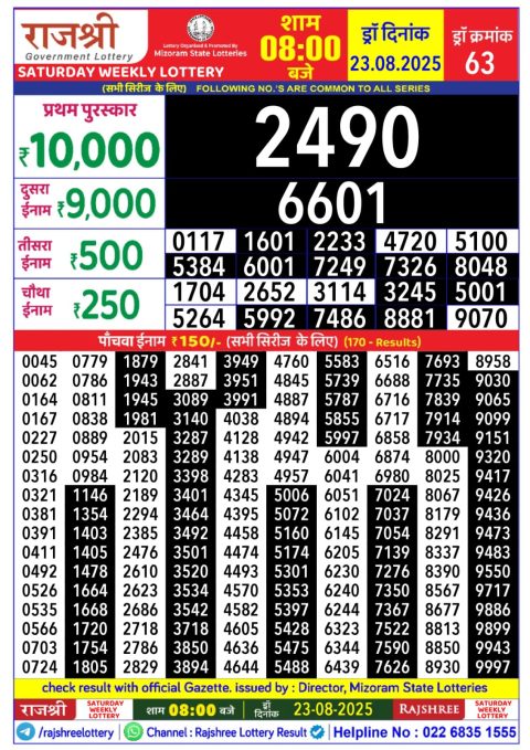 Rajshree 50 Weekly Lottery 7:30PM Result 23.08.2025