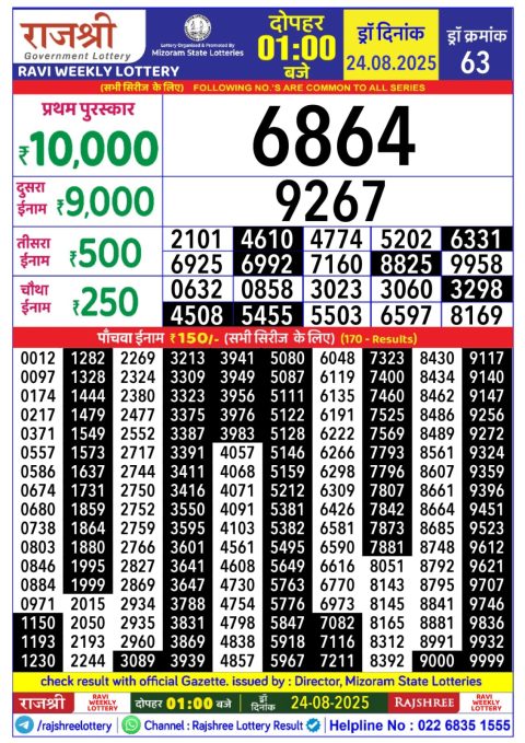 Rajshree Daily Lottery 1PM Result 24.08.2025