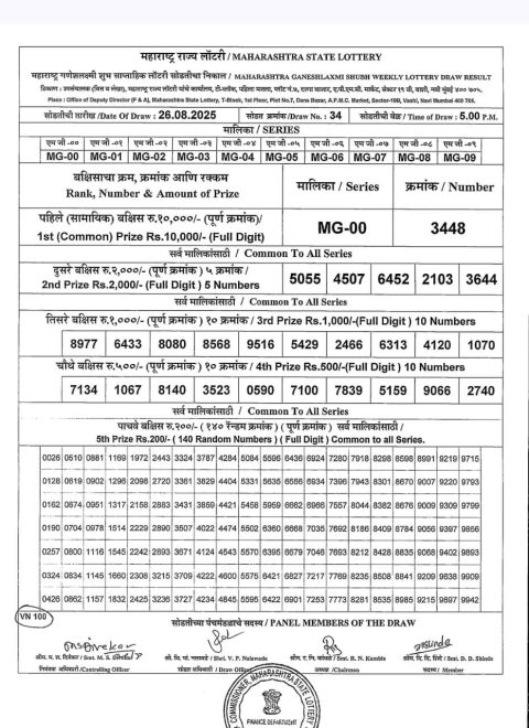 Maharashtra Weekly Lottery 4.15PM Result 26.08.2025