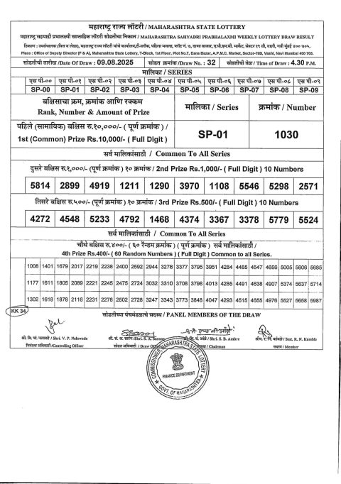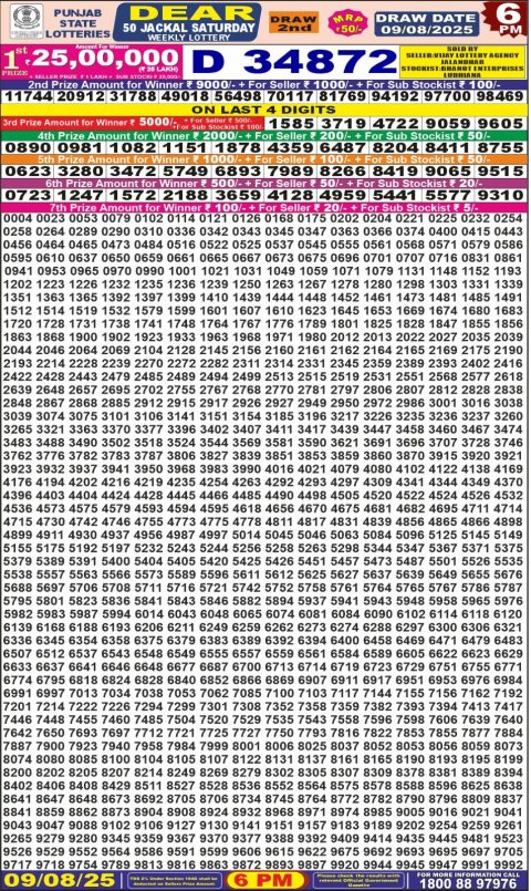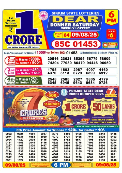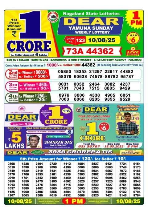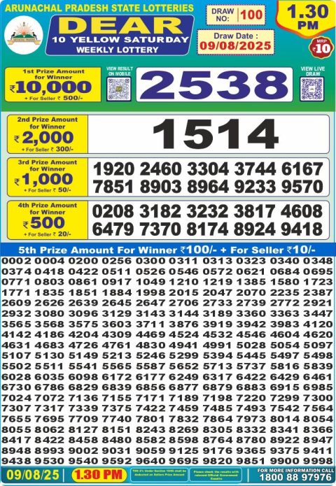 Dear 10 Daily Lottery 1:30PM Result 09.08.2025