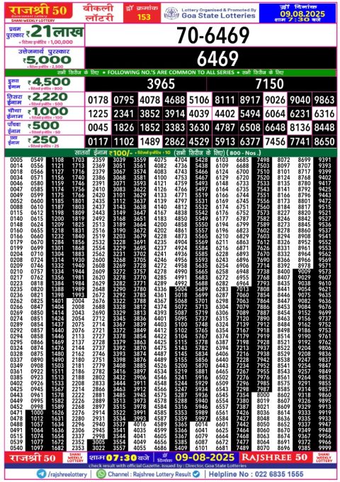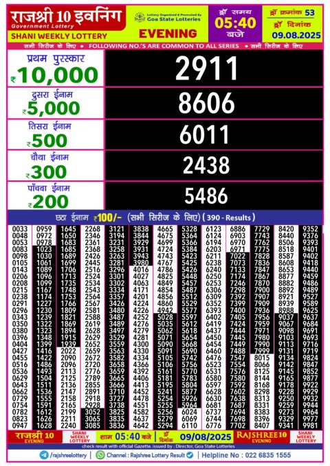 Rajshree Daily Lottery 1PM Result 10.08.2025