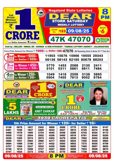 Dear 10 Daily Lottery 7PM Result 09.08.2025