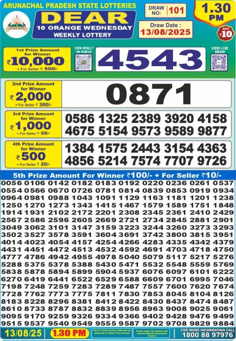Dear 10 Daily Lottery 1:30PM Result 13.08.2025