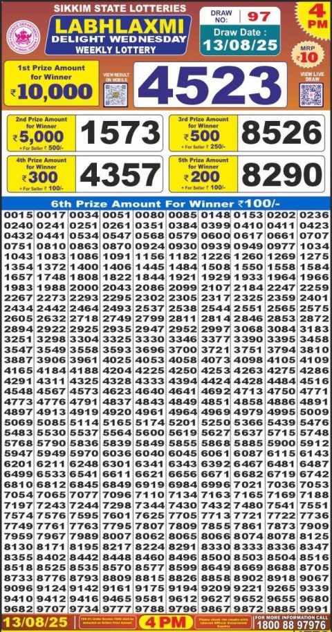 Labh Laxmi Daily Lottery 4PM Result 13.08.2025
