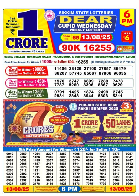 Maharashtra Weekly Lottery 4.15PM Result 13.08.2025