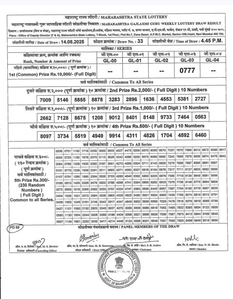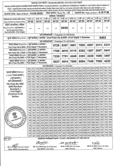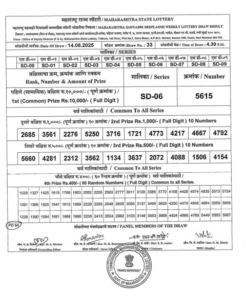 Maharashtra Weekly Lottery 4.15PM Result 14.08.2025