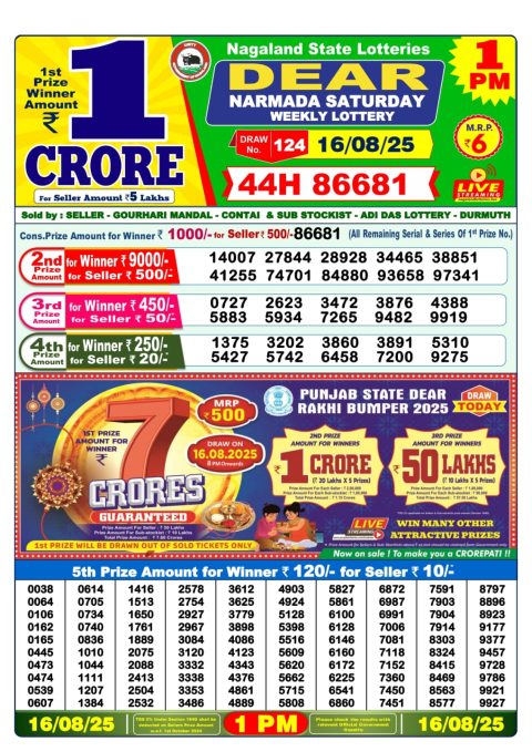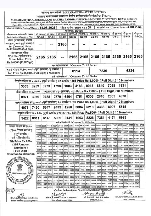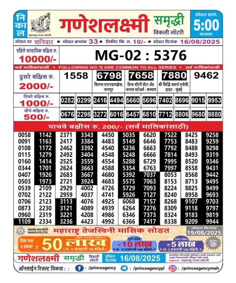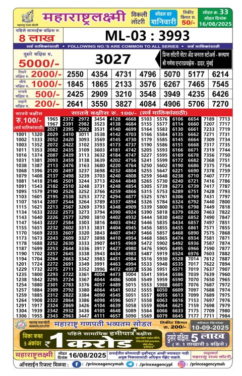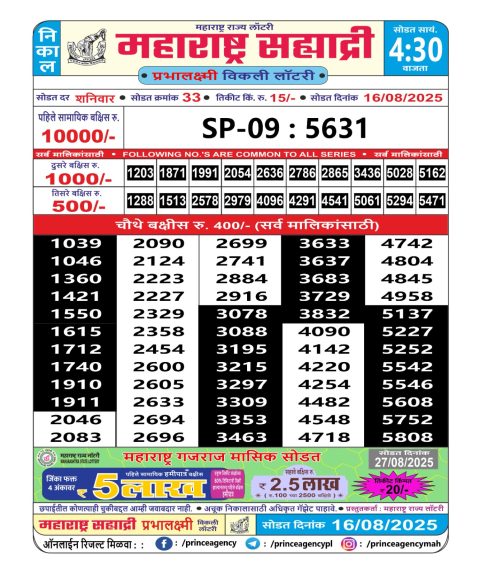 Maharashtra Weekly Lottery 4.15PM Result 16.08.2025