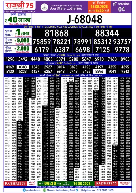 Rajshree 75 Monthly Lottery Result 14.08.2025