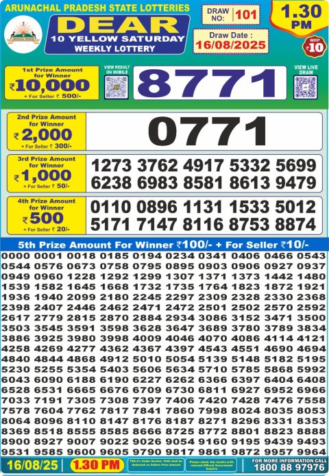 Dear 10 Daily Lottery 1:30PM Result 16.08.2025
