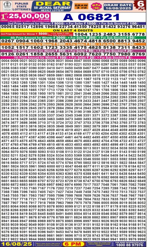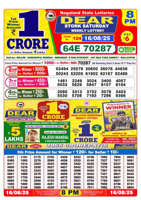 Dear 10 Daily Lottery 7PM Result 16.08.2025
