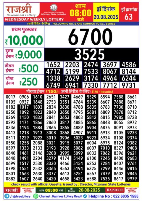 Rajshree 30 Weekly Lottery 8:30PM Result 20.08.2025