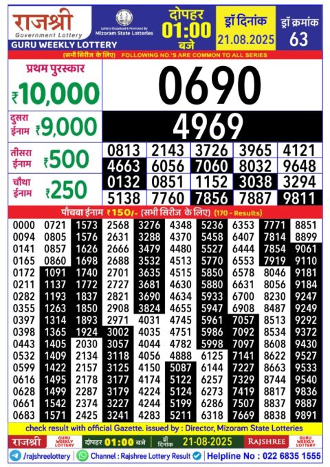 Rajshree Daily Lottery 1PM Result 21.08.2025