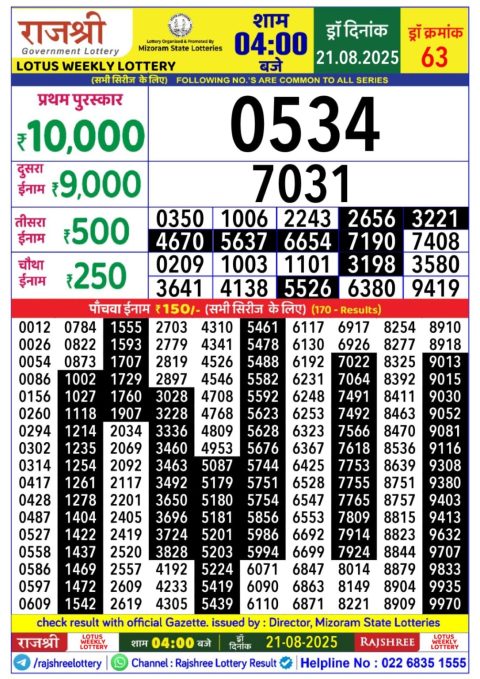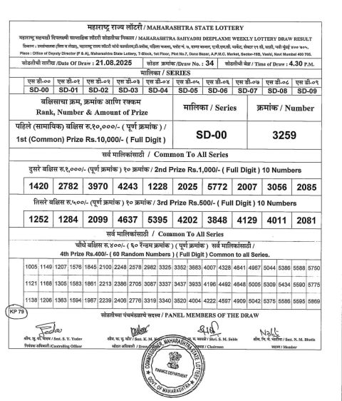 Maharashtra Weekly Lottery 4.15PM Result 21.08.2025