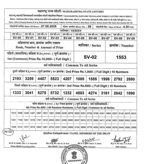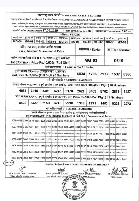 Maharashtra Weekly Lottery 4.15PM Result 27.08.2025
