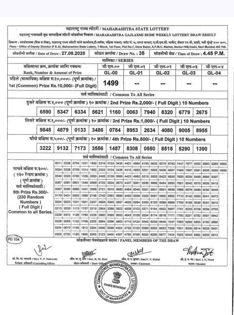 Maharashtra Gajraj Monthly Lottery Result 27 August 2025..