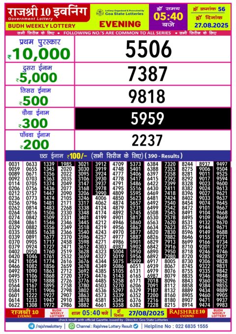 27August 2025 5.40pm – rajshree 10 Goa state Lotteries 5.40pm Result has been declared for 27/08/2025 . First prize rs…