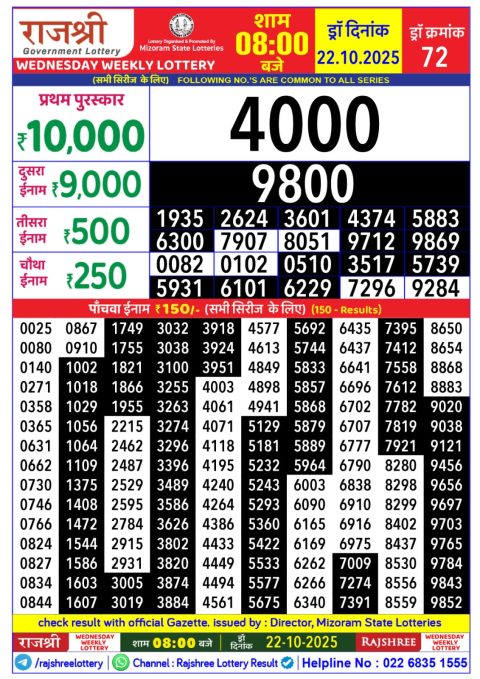 Rajshree 10 Daily Lottery 5.40PM Result 22.10.2025