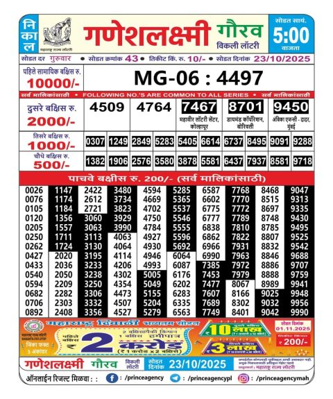 Maharashtra lottery gajraj Monthly Result 22.10.2025