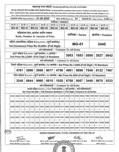 Maharashtra Weekly Lottery 4.15PM Result 21.08.2025