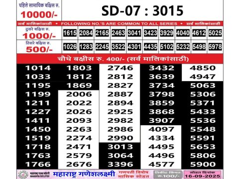 Maharashtra Sahyadri Weekly Lottery 4.30PM Result 11.09.2025