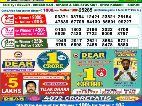 Nagaland State Dear Lottery 1PM Result 08.10.2025