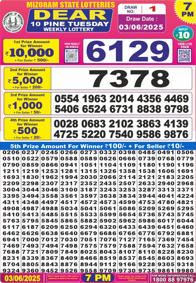 Dear 10 Daily Lottery 7 Pm Result 3.06.2025