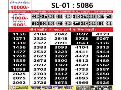 Maharashtra Sahyadri Weekly Lottery 4.30PM Result 29.09.2025