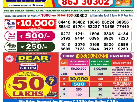 Sikkim State Dear Lottery 6PM Result 03.10.2025
