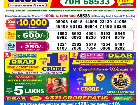 Dear Daily Lottery 8 PM Result 17.07.2025