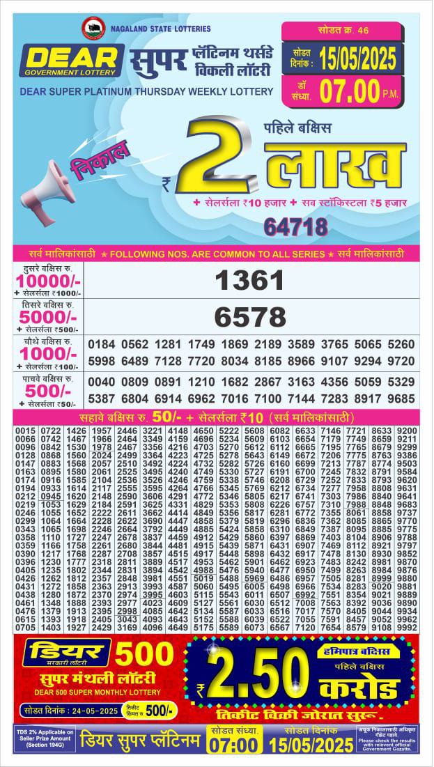 Dear Super Daily Lottery 7 Pm Result 15.05.2025