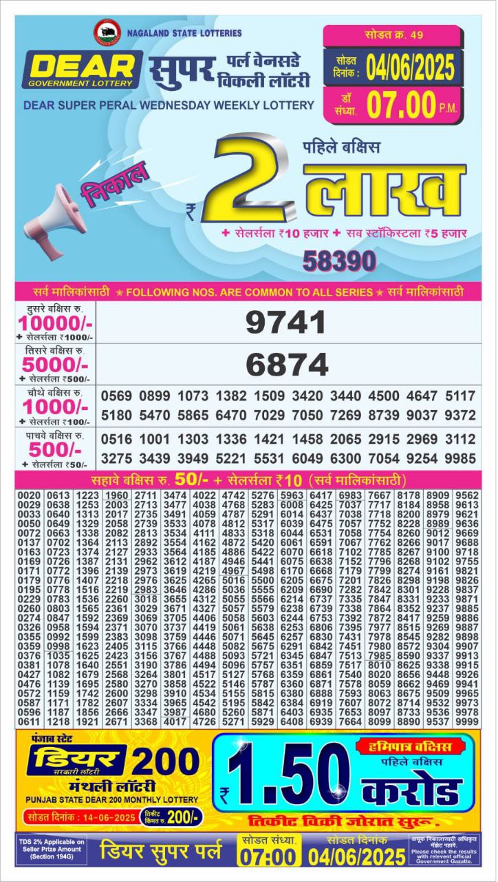 Dear Super Daily Lottery 7 Pm Result 4.06.2025