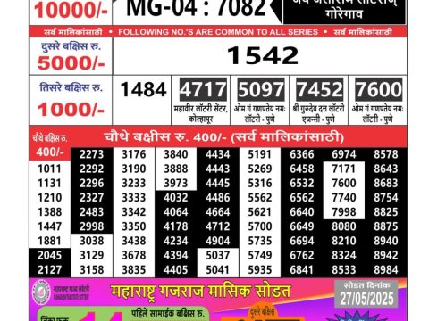 Maharashtra Gajlaxmi Weekly Lottery 4.45 Pm Result 28.05.2025