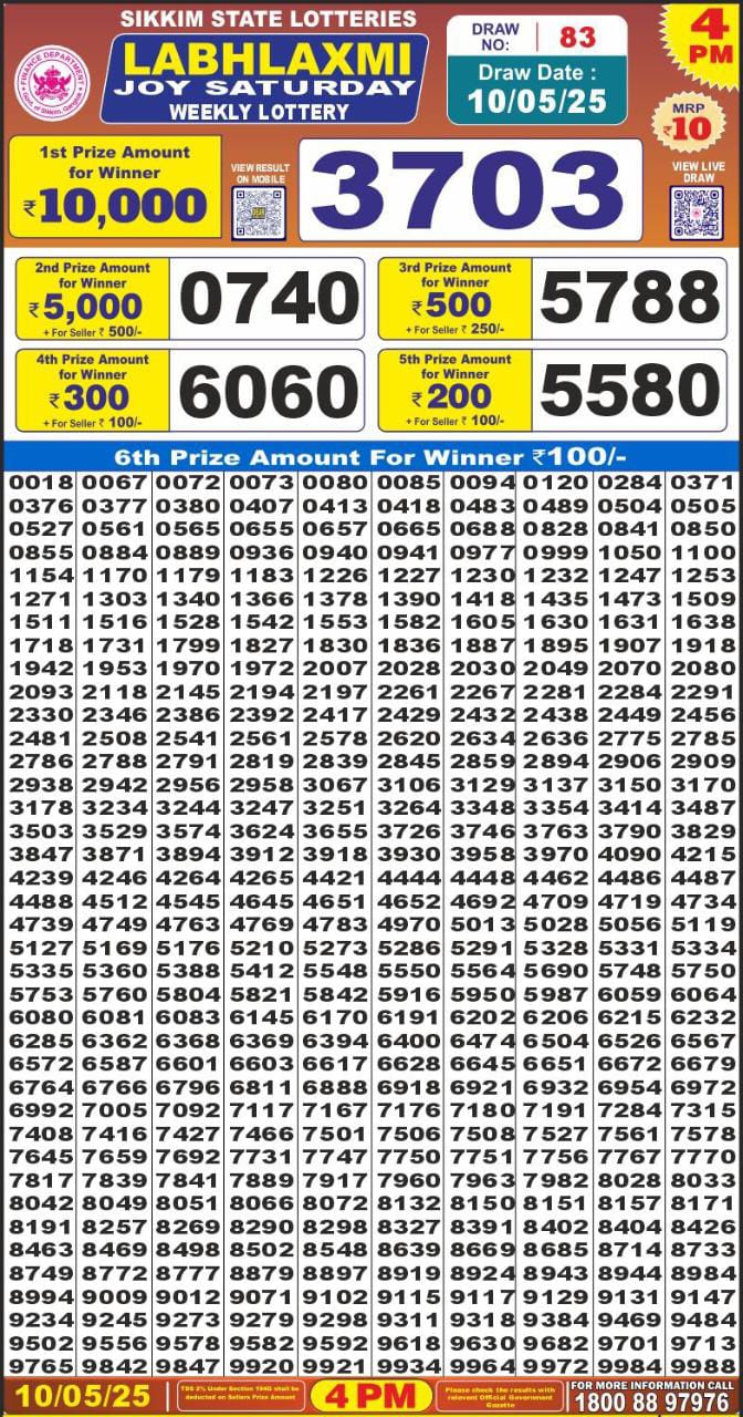 Labh Laxmi Daily Lottery 4 PM Result 10.05.2025