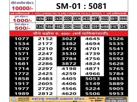 Labh Laxmi Daily Lottery 4PM Result 01.09.2025 September 1, 2025 Leave a comment 01 September 2025 4pm – Sikkim State Labhlaxmi lottery 4pm Result has been declared for 01/09/2025 . The First prize Winning Ticket number is 3427 . Rest of the result is published here for your reference. Related Results Dear 10 Lottery 1:30 PM Result 27.04.2025 Maharashtra Gajlaxmi Weekly Lottery 4.45PM Result 21.09.2025 Maharashtra Sahyadri Weekly Lottery 4.30PM Result 09.09.2025
