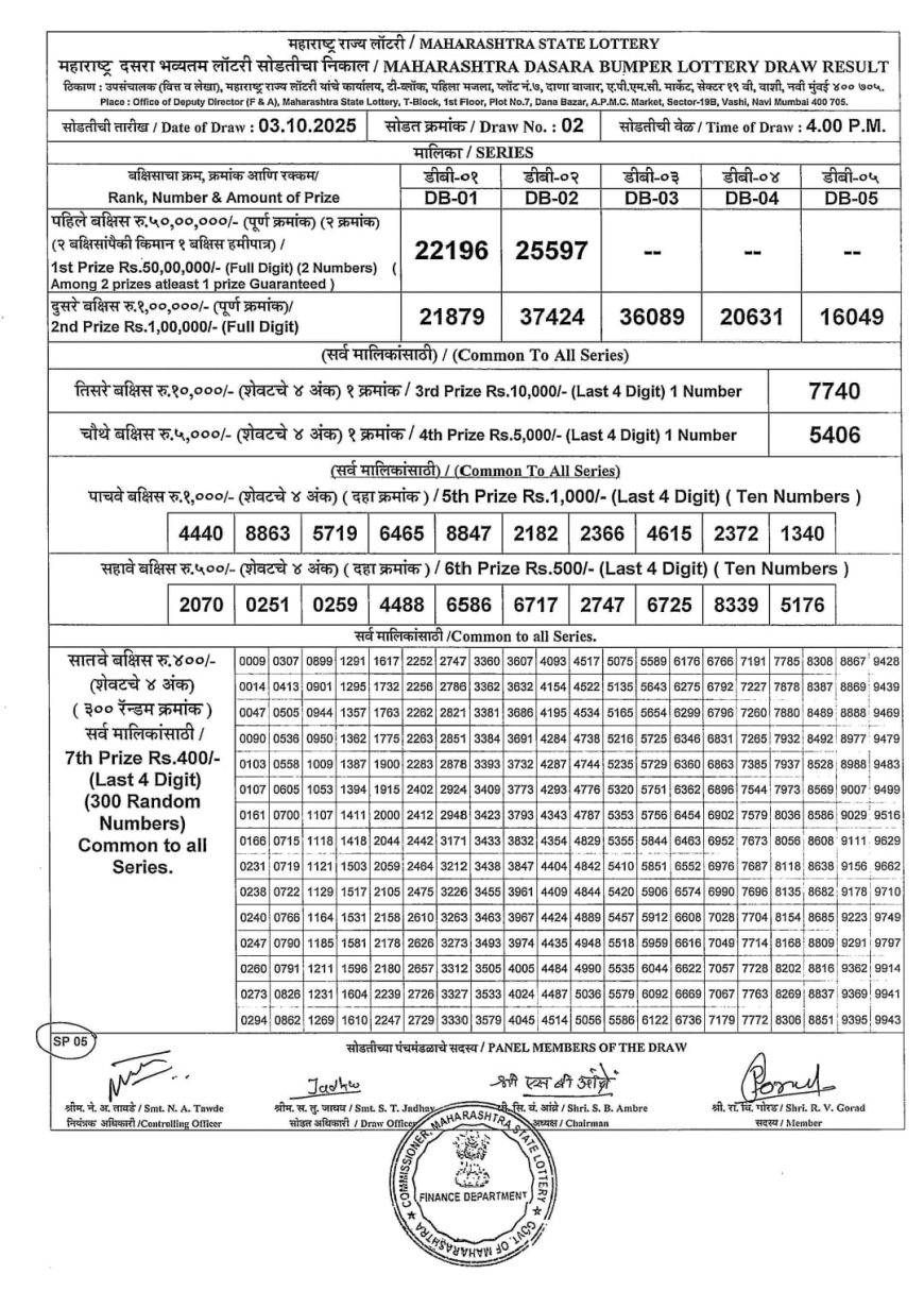 Maharashtra Dasara Bumper Lottery result 03.10.2025