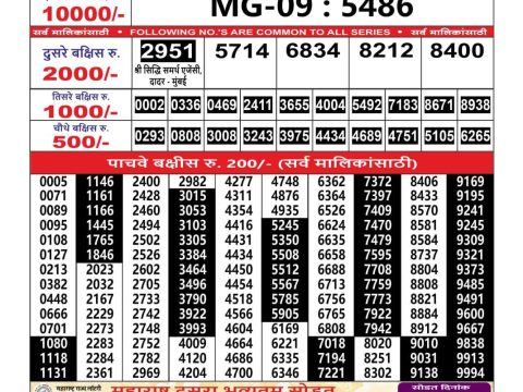 Maharashtra Gajlaxmi Weekly Lottery 4.45PM Result 29.07.2025