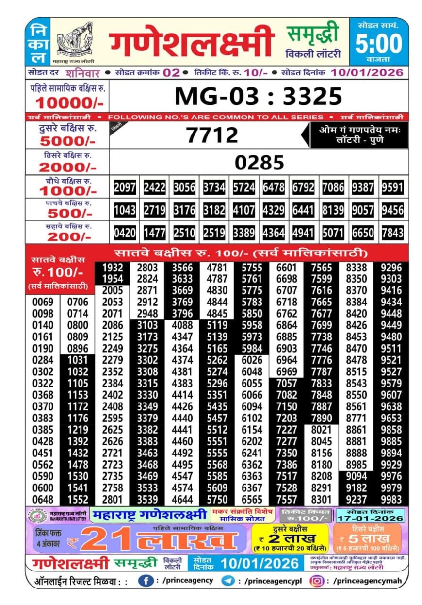 Maharashtra Ganeshlaxmi Lottery Result 10.01.2026