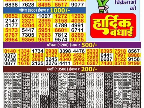 Maharashtra Ganeshlaxmi Weekly Lottery 5 Pm Result 16.05.2025 May 16, 2025 Leave a comment Related Results Maharashtra Gajlaxmi Weekly Lottery 4.45PM Result 29.10.2025 Dear 50 Daily Lottery 5 Pm Result 2.06.2025 Rajshree Daily Lottery 1 PM Result 14.07.2025