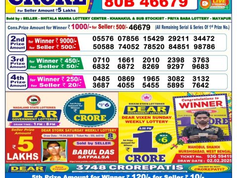 Dear Daily Lottery 8 Pm Result 19.05.2025