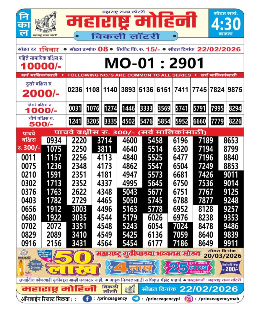 Maharashtra Mohini lottery result 22.02.2026