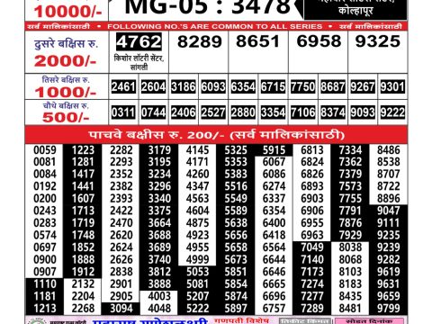 Maharashtra Ganeshlaxmi Weekly Lottery 5PM Result 12.09.2025